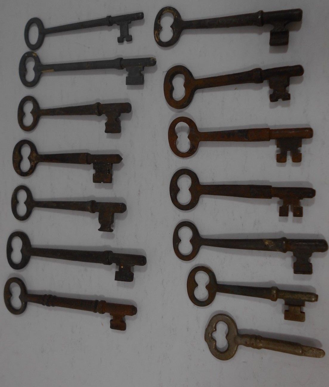 Lot of 14 Antique Skeleton Keys Steampunk Cast Iron Door Lock Furniture