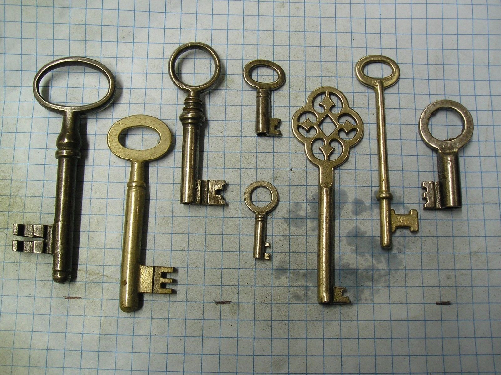 Title (ebay affiliate link): LOT OF 8 ANTIQUE SKELETON, FURNITURE, BARREL, CABINET AND OLD LOCK KEYS