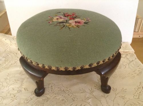 Title (ebay affiliate link): Antique Queen Anne mahogany foot stool Light Green needlepoint W Flowers