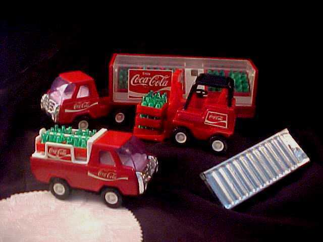 Buddy L. Corp Japan Coca Cola Long Truck, Tiny Crates of Bottles, Loader, Van an