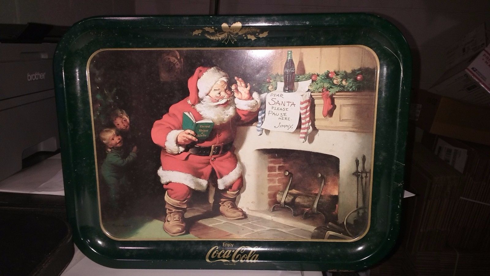 Title (ebay affiliate link): Vintage Coca Cola Christmas Santa Claus Green Metal Serving Tray