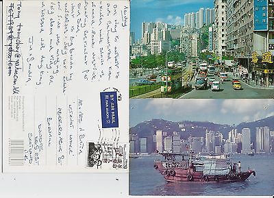 Title (ebay affiliate link): Street scene, ferries etc., on four Hong Kong postcards to Britain and Falklands