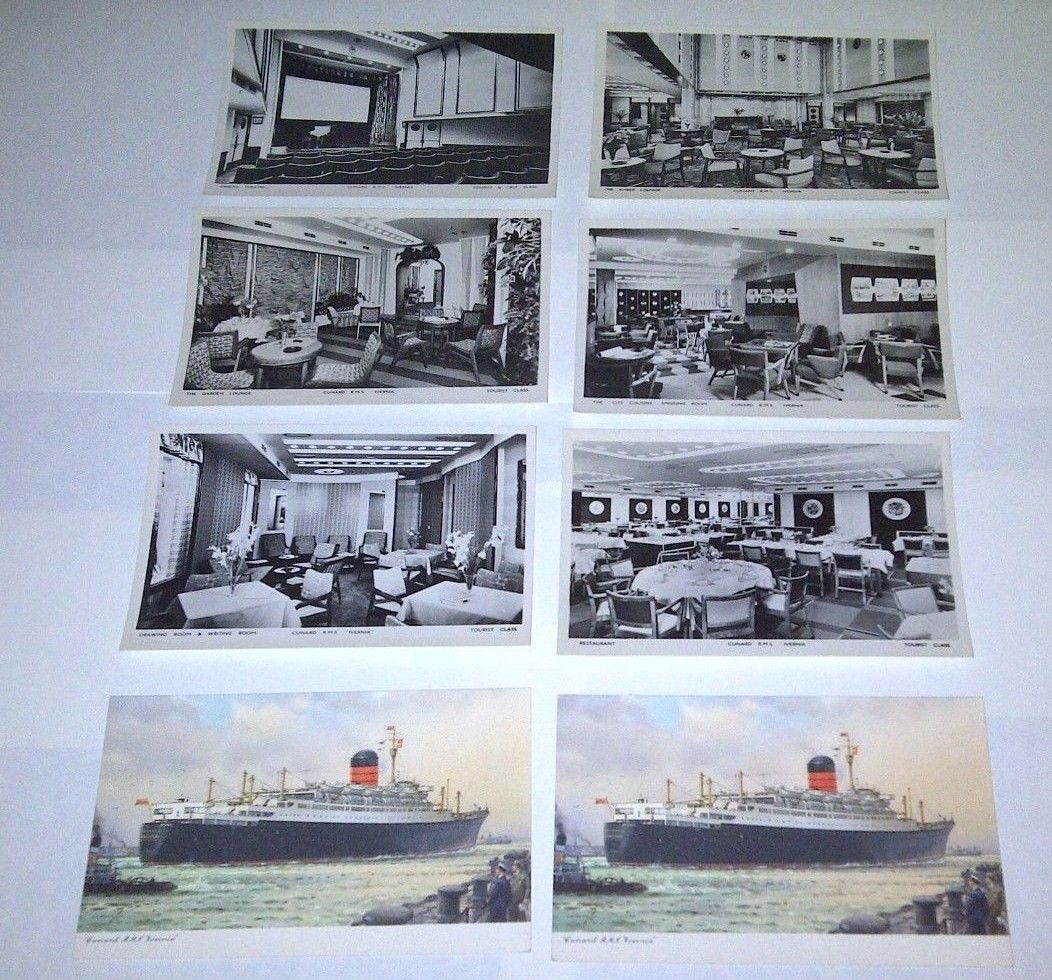 MILITARY POSTCARDS CUNARD RMS IVERNIA 2 PRINTS + 6 REAL PHOTOS OF INSIDE SHIP