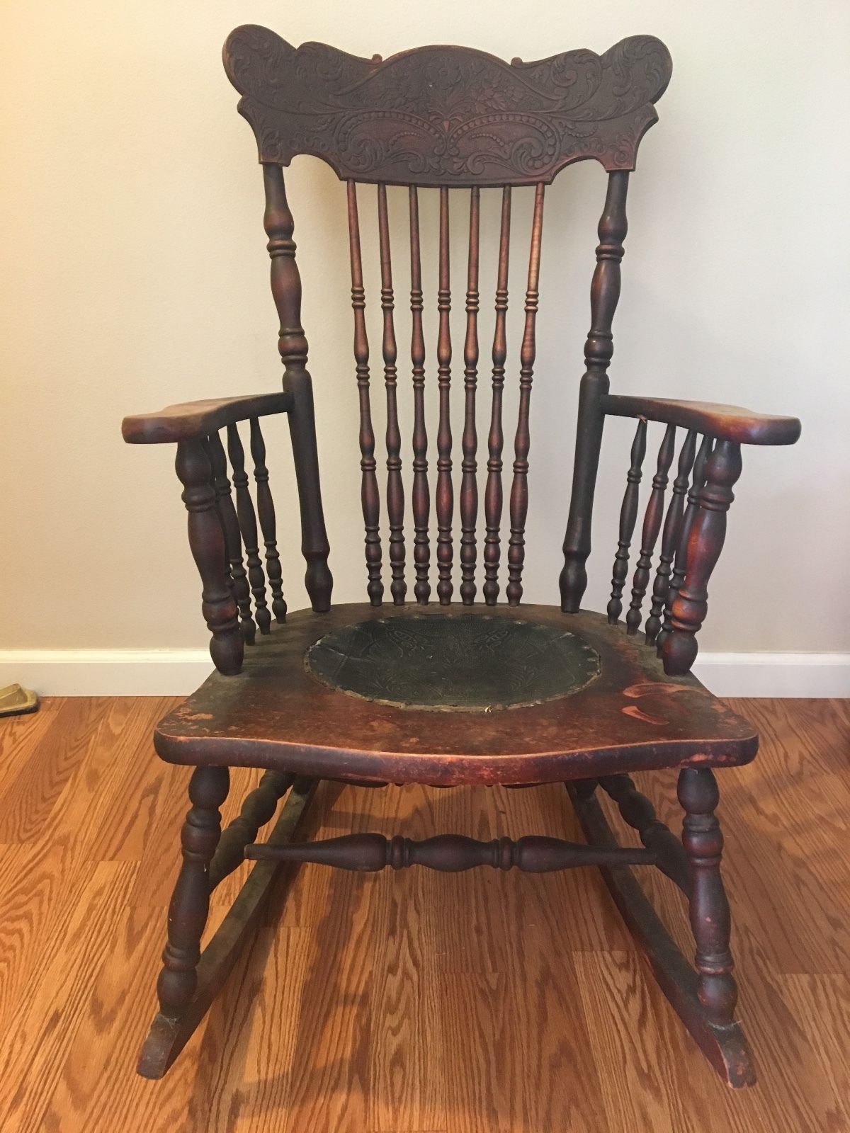 Title (ebay affiliate link): Turn of the Century Antique Pressed Back Solid Wood Rocker Rocking Chair