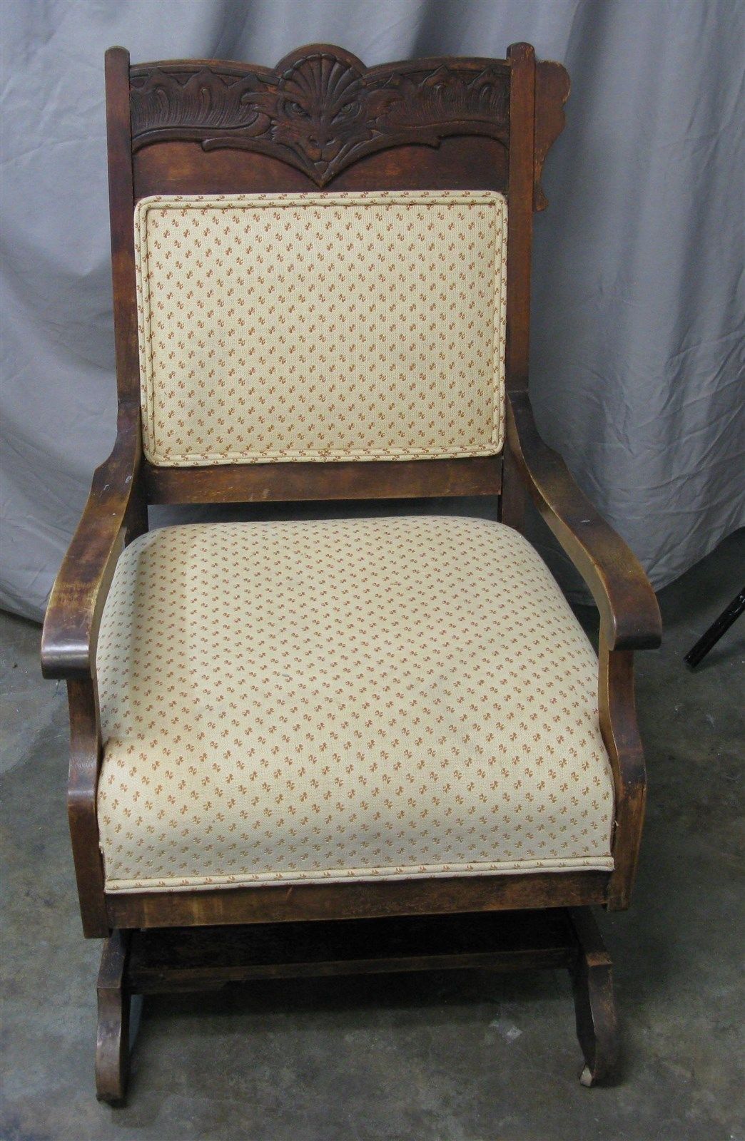 Title (ebay affiliate link): Vintage Wood Rocking Chair Animal Face Upholstered *Local Pickup Only*