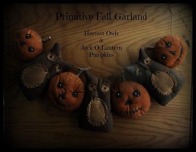 Title (ebay affiliate link): Primitive Halloween Harvest Fall Garland Swag JOL Pumpkins Harvest Owls LAST ONE