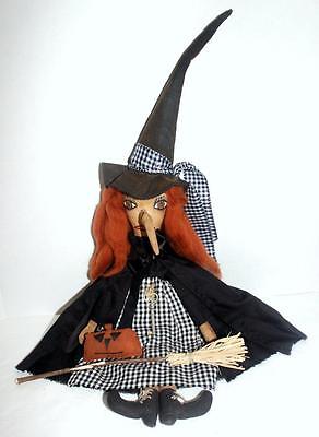 Title (ebay affiliate link): Primitive Halloween Red-Haired Witch Doll - Long Crooked Nose, Broom, Pumpkin