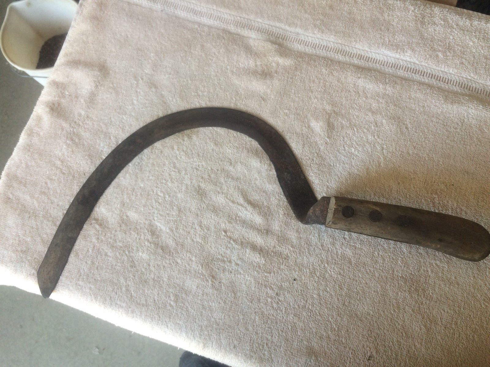Title (ebay affiliate link): ANTIQUE SCYTHE / SICKLE MARKED VILLAGE BLACKSMITH WATERTOWN WIS