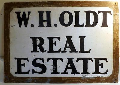 Antique Hand Painted W.H. Oldt Real Estate Metal Trade Sign 13x16" c1930s