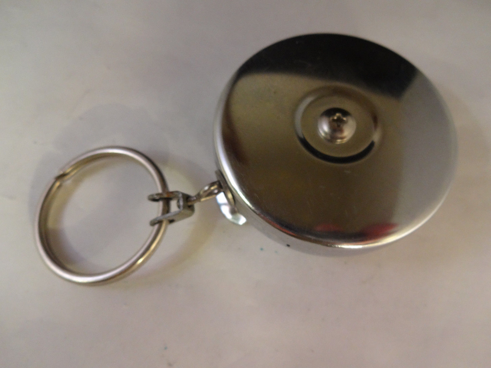 Title (ebay affiliate link): Nice Vintage Key-Bak Original Chrome Self Retracting Reel Key Holder Pat 2732148