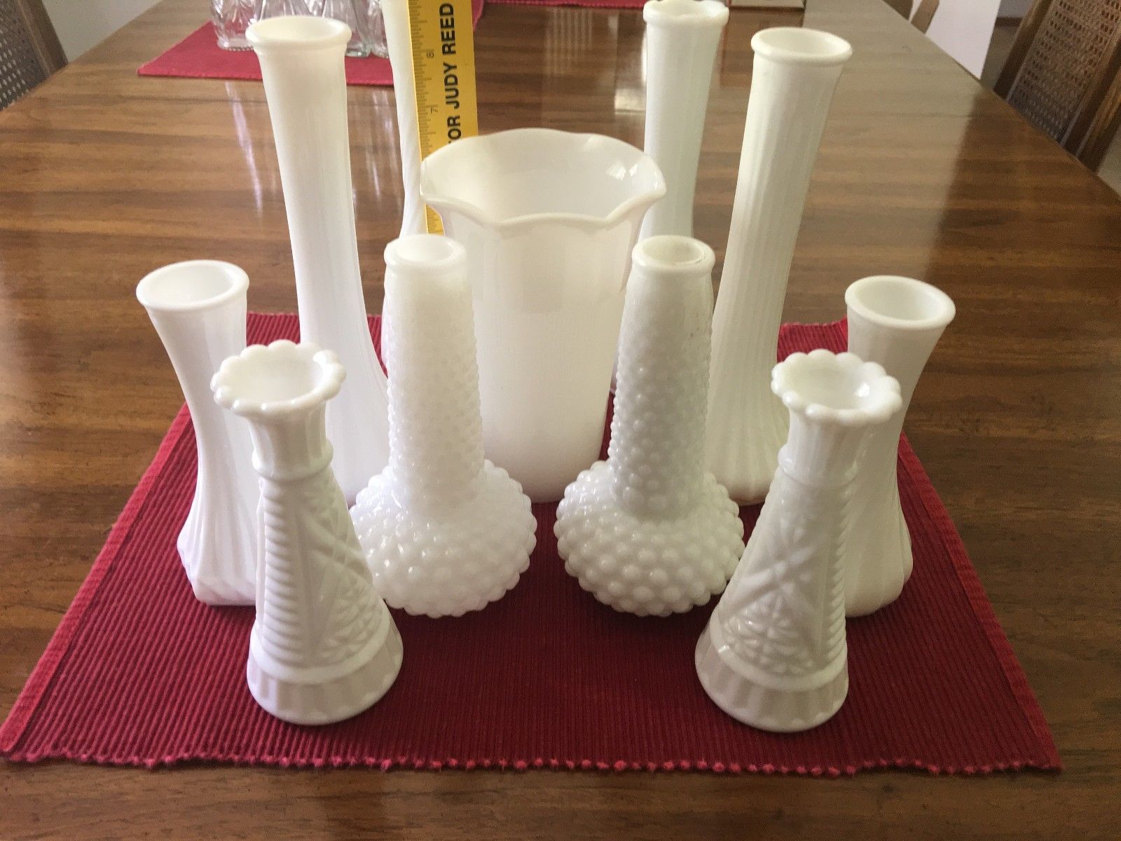 Vintage Milk Glass Bud Vases Hoosier, Anchor Hocking Great for Weddings/Showers
