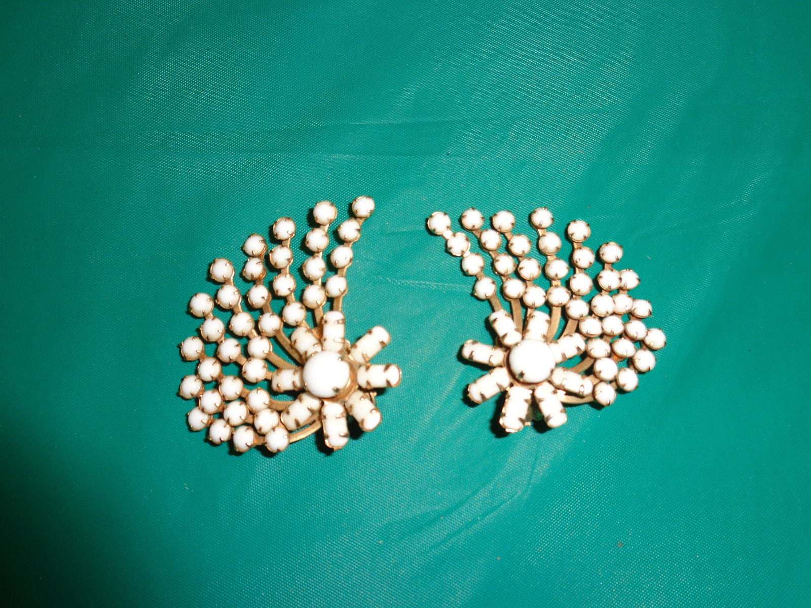 Title (ebay affiliate link): Vintage Goldtone White Milk Glass Large Flower Spray Clip on Earrings