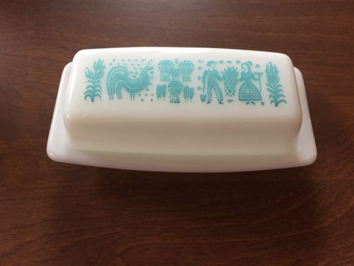 Title (ebay affiliate link): Vintage Pyrex Turquoise Amish Butterprint Milk Glass Butter Dish