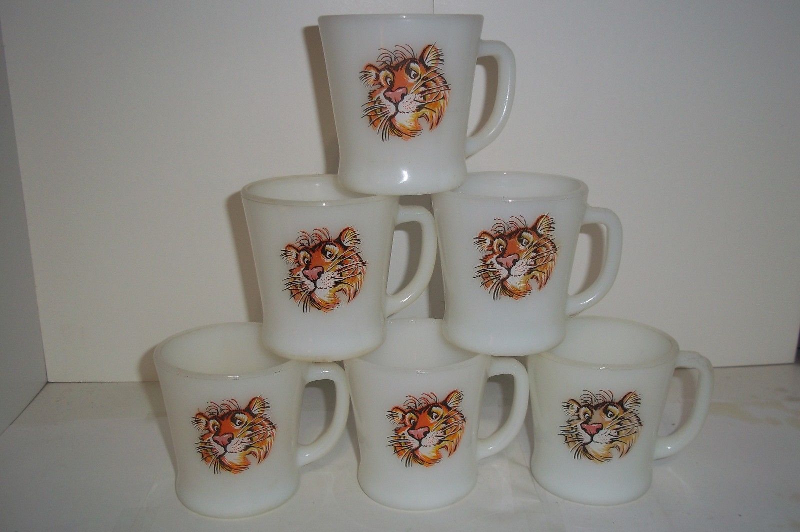 Title (ebay affiliate link): 6 Vintage ESSO TIGER, GAS & OIL Anchor Hocking Fire King White Milk Glass Cups