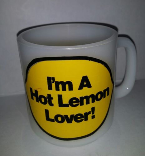 Title (ebay affiliate link): Vintage Glasbake I''m A Hot Lemon Lover Milk Glass Coffee Cup Mug