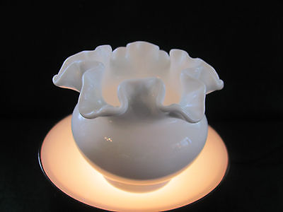 FENTON SMALL 4" RUFFLED WHITE MILK GLASS ROSE BOWL