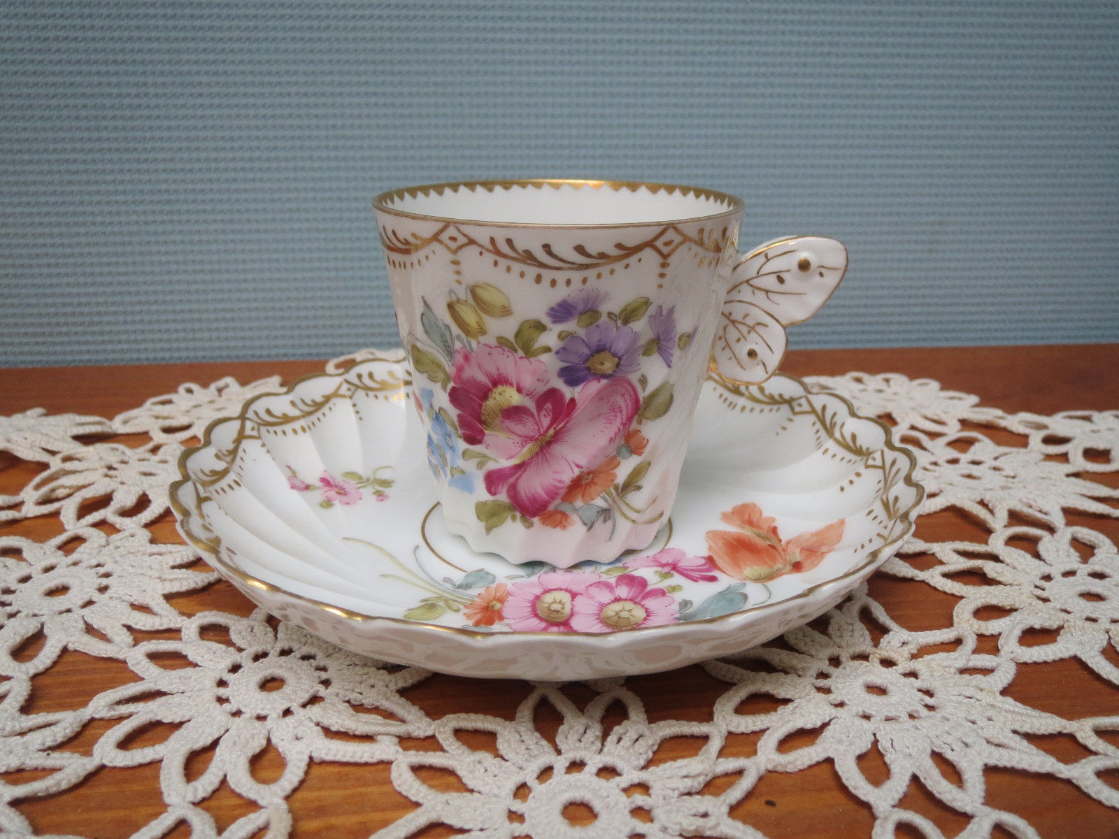 SAXE Cup and saucer German porcelain Saxe Decoration butterfly and flowers