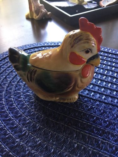 Rare Chicken Rooster Stacking Porcelain Open Salt, Pepper Shaker