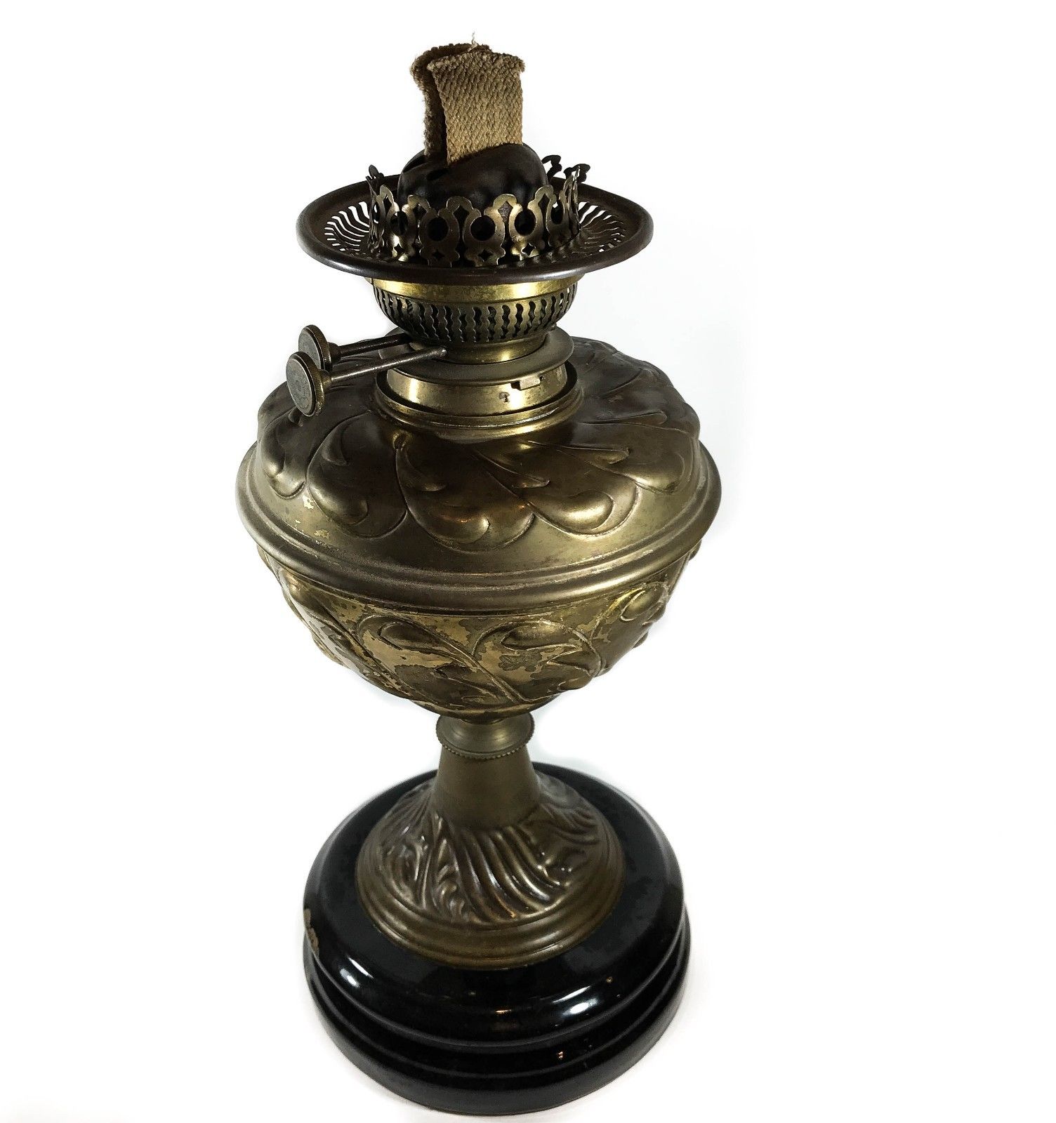 Antique Victorian Brass Oil Lamp With Ceramic Base Collectable Vintage Lighting