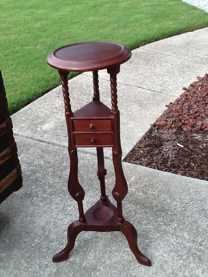 Title (ebay affiliate link): Vintage Mahogany Round 34" Tall Plant Stand Table 2 draws Biggs?