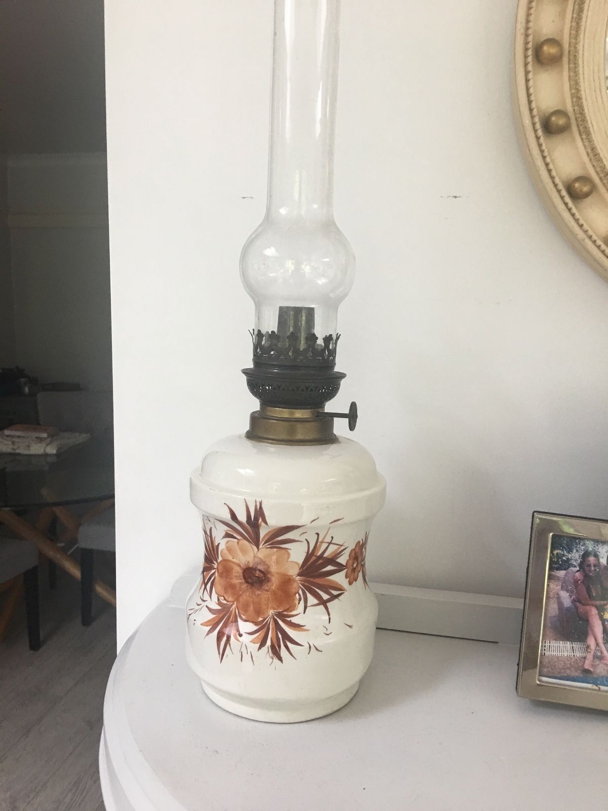 Title (ebay affiliate link): vintage cream pottery french hurricane lamp, oil lamp.