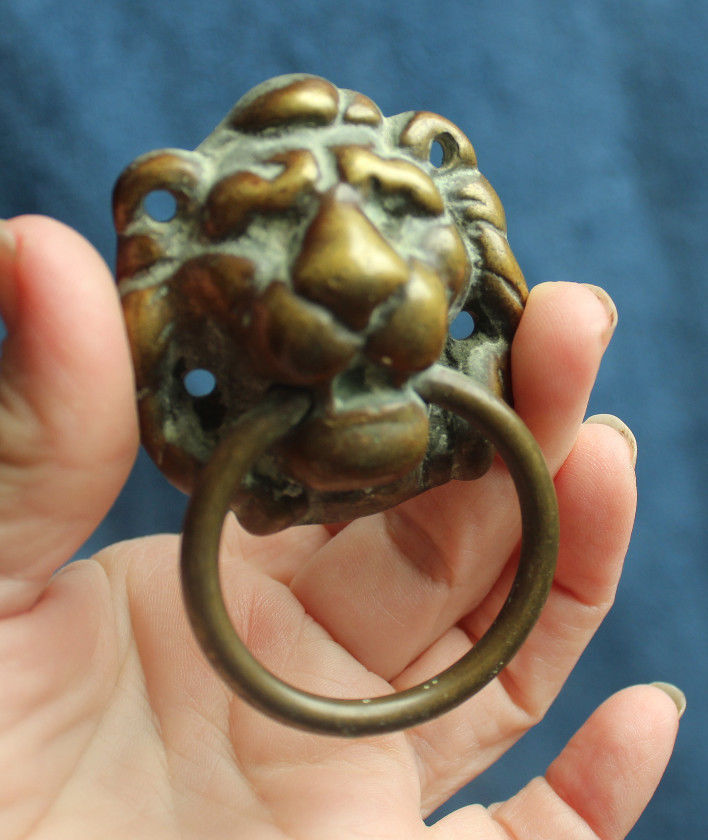Title (ebay affiliate link): Antique Furniture Hardware -Bronze/Brass Lion Head Drawer Pull with Patina