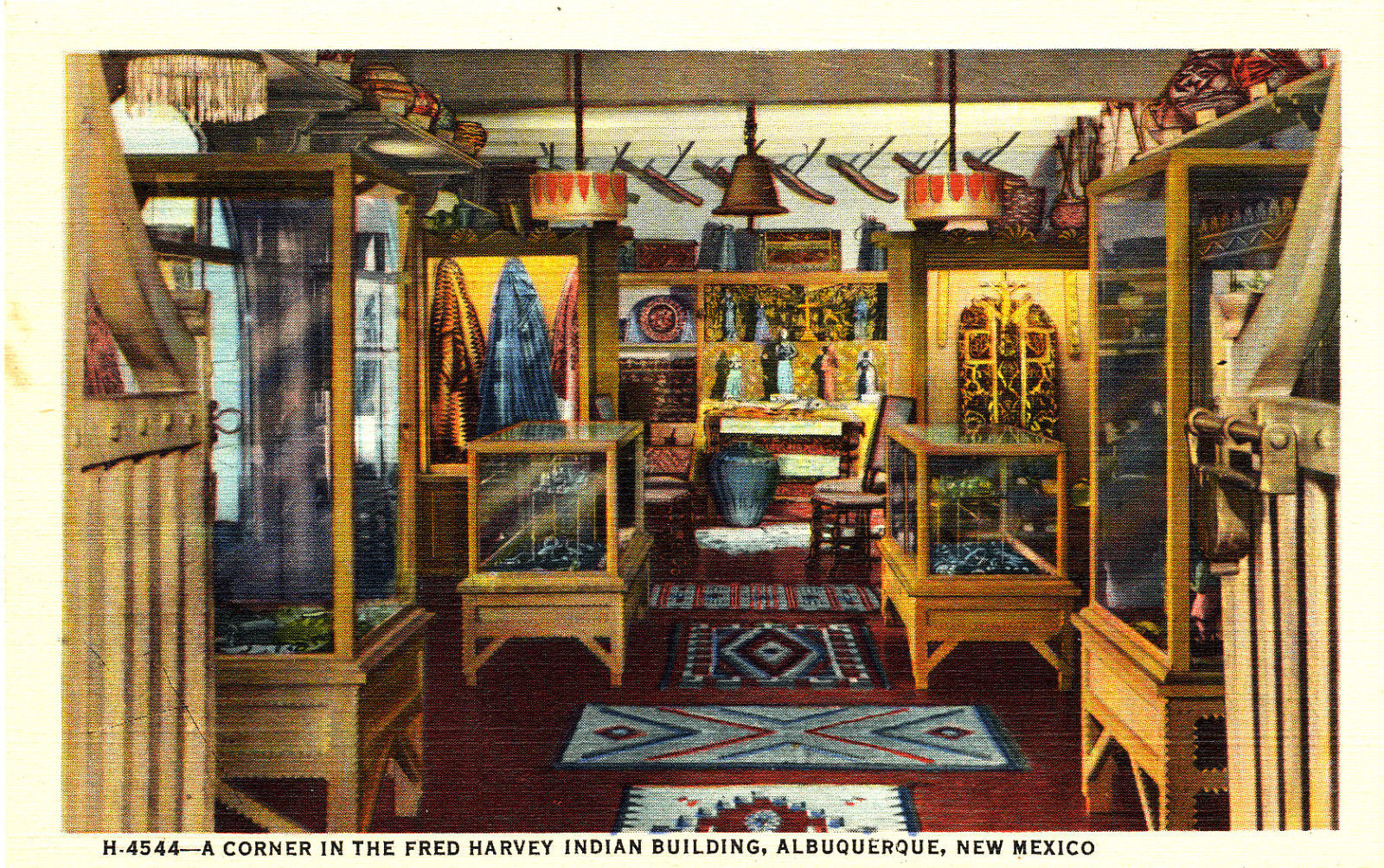 Title (ebay affiliate link): NM Albuquerque: "A Corner in Fred Harvey Indian Bldg" Fred Harvey/CT Linen Card