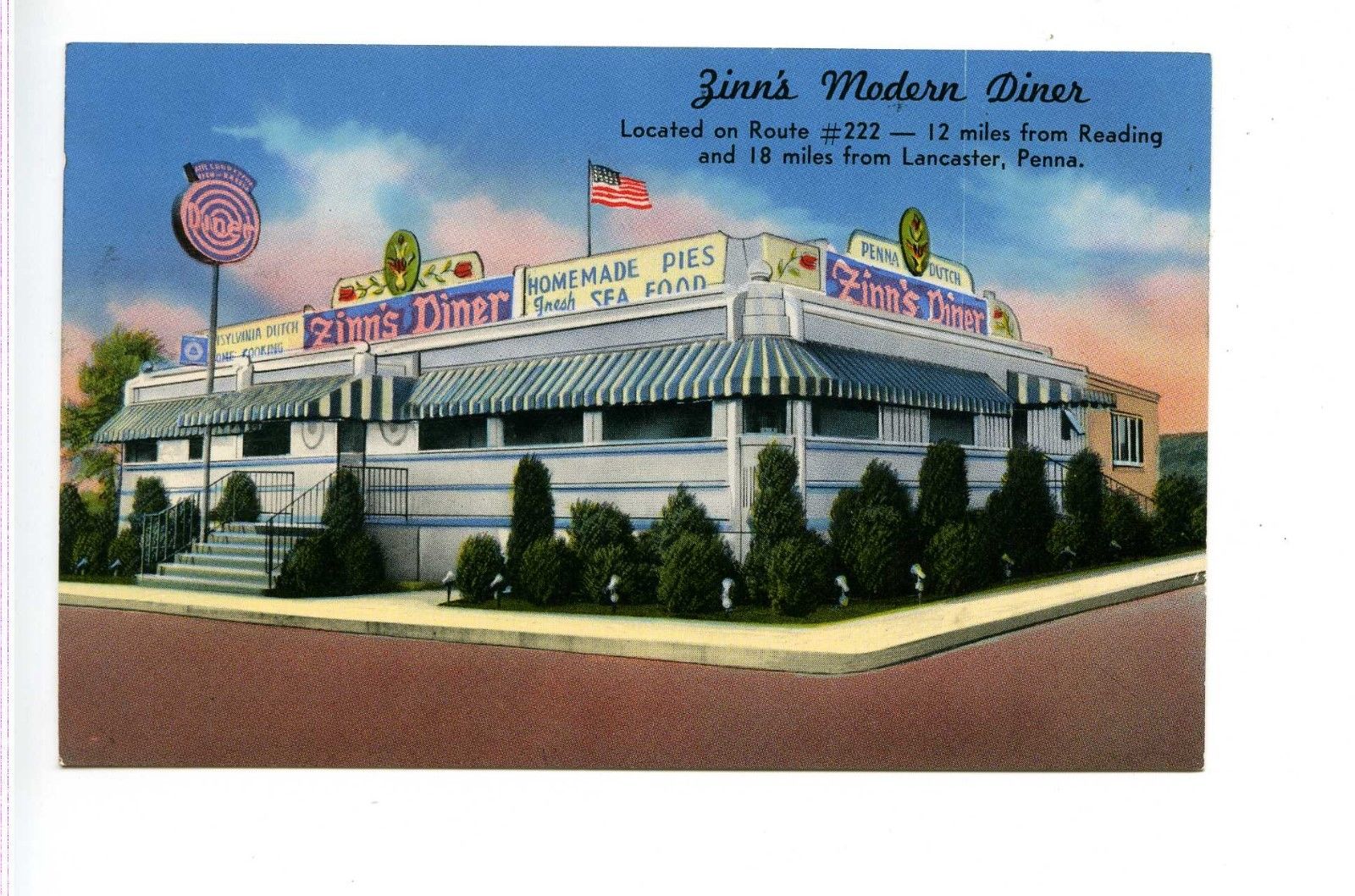 POSTCARD ZINN''S DINER ROUTE 222 READING LANCASTER PA