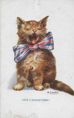 Title (ebay affiliate link): ANTIQUE ANIMAL POSTCARD, FLUFFY YELLOW CAT, FRENCH BOW, RED, BLUE D/B c1907-1915