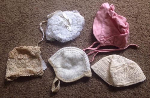 Title (ebay affiliate link): Lot of 5 Vintage/Antique Baby Girl Hats/Bonnets Lace/Crochet/+ Great for Dolls