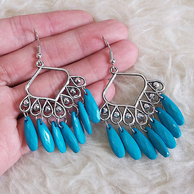 Title (ebay affiliate link): Vintage Womens Bohemian Hippies Antique Blue Teardrop Bead Dangle Hook Earrings