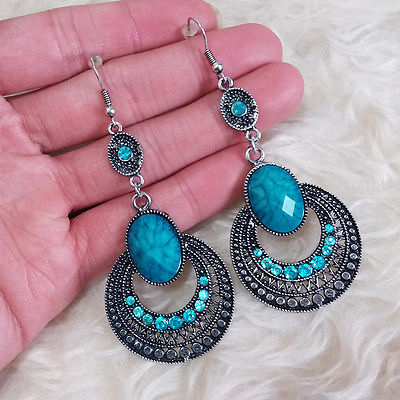 Title (ebay affiliate link): Antique Vintage Bohemian Womens Blue Bead Rheinstone Dangle Drop Hook Earrings