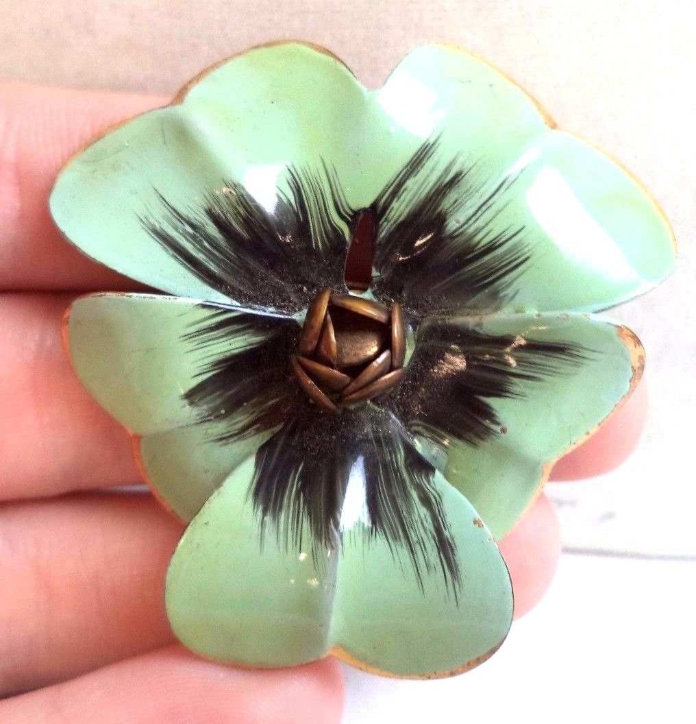 Title (ebay affiliate link): STUNNING ANTIQUE ESTATE GREEN ENAMEL FLOWER 2" BROOCH!!! 5791F