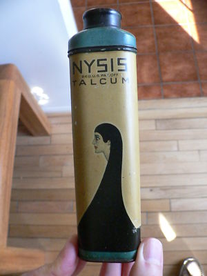 triangular tin: Nysis Talcum, Agra Parfumeur, Detroit
