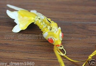 Title (ebay affiliate link): HANDMADE YELLOW CHINESE CLOISONNE ENAMEL GOLD FISH CAR KEY ORNAMENT PENDANT