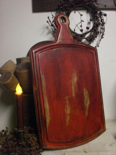 Title (ebay affiliate link): Primitive Wooden Red Cutting Board ~ Wood Chop Board w/ Handle