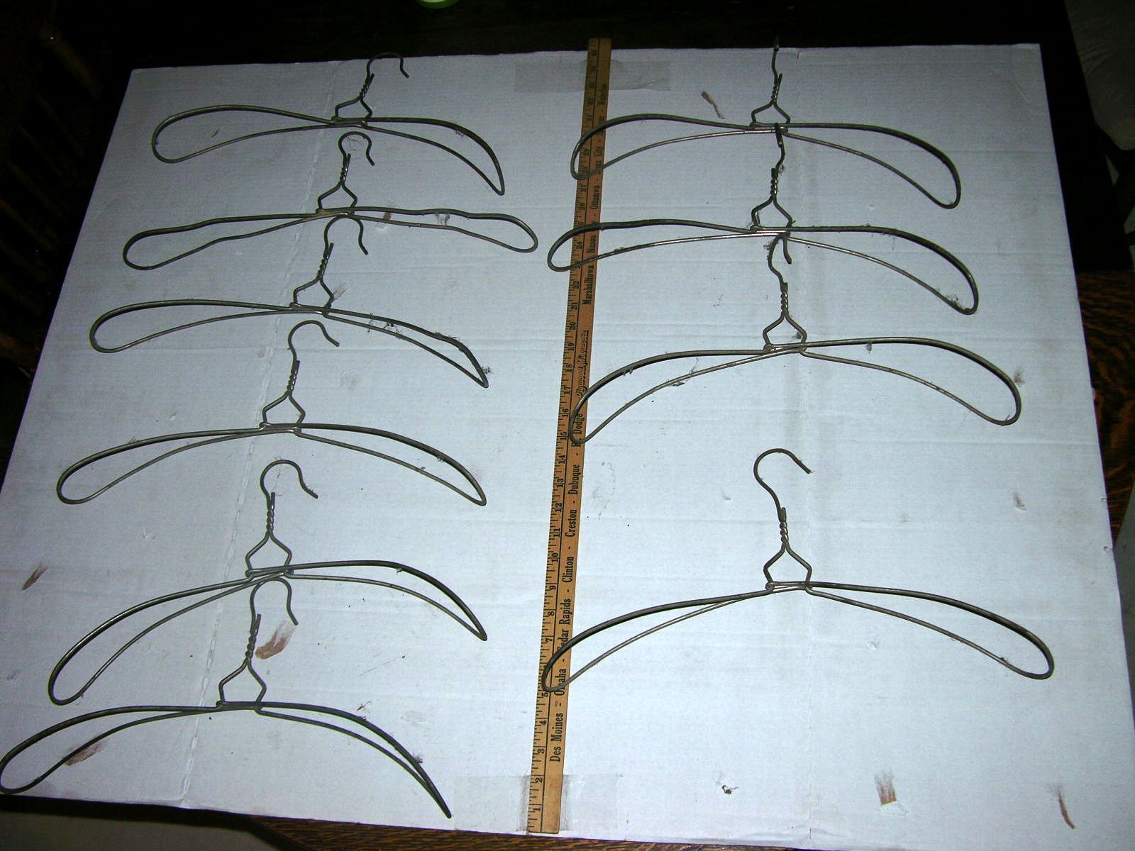 10 Antique Heavy WIRE CLOTHING HANGERs PRIMITIVE FOLK ART