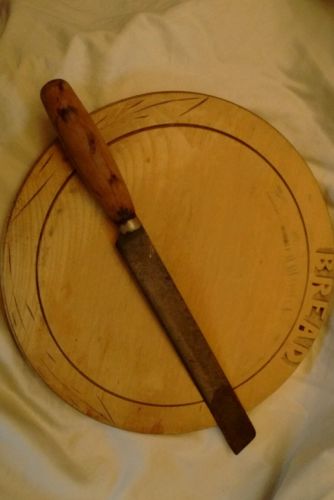 Antique Primitive Round Hand Carved Bread Wood Cutting Board with bread knife