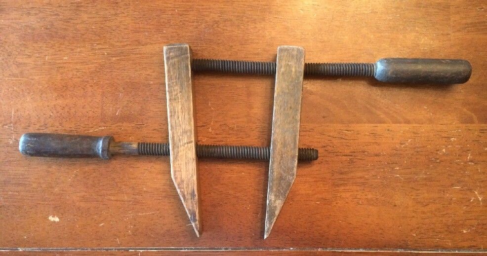 ANTIQUE PRIMITIVE TJB WOOD SCREW CLAMP TOOL