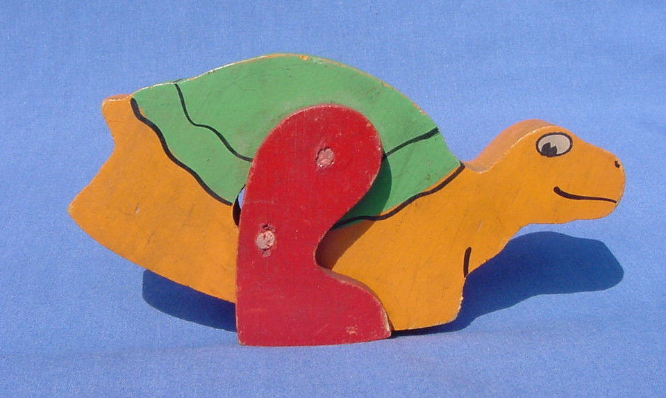 VINTAGE COLORFUL PRIMITIVE WOOD TOY WALKING TURTLE