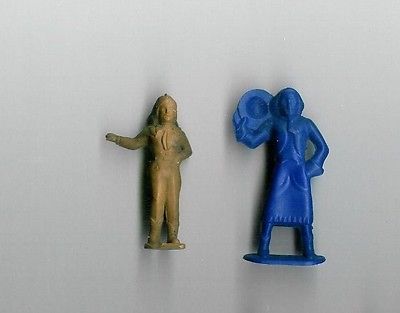 2 VINTAGE COWGIRLS PLASTIC PLAYSET FIGURES REL + MARX