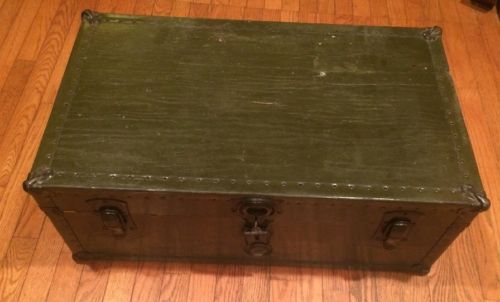 Title (ebay affiliate link): Vintage/ Antique Military Green Steamer Trunk Foot Locker w/ Removable Tray
