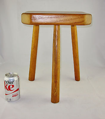 WONDERFUL PRIMITIVE 3 LEGGED WOODEN MILKING STOOL * 15" TALL * OAK WOOD * NICE !