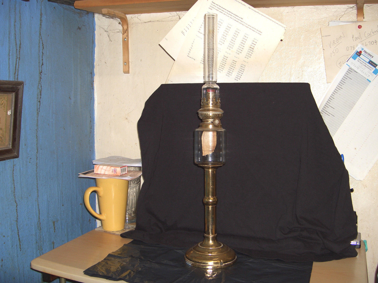 Title (ebay affiliate link): VINTAGE ANTIQUE KOSMOS BRENNER BRASS AND GLASS STICK OIL LAMP WORKING