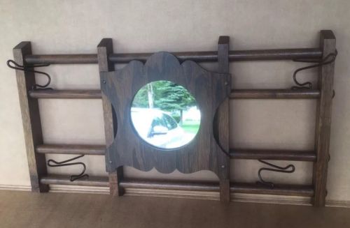 Title (ebay affiliate link): Antique Vintage Oak Hat Towel Wall Rack Swivel Wire Double Hooks With Mirror.