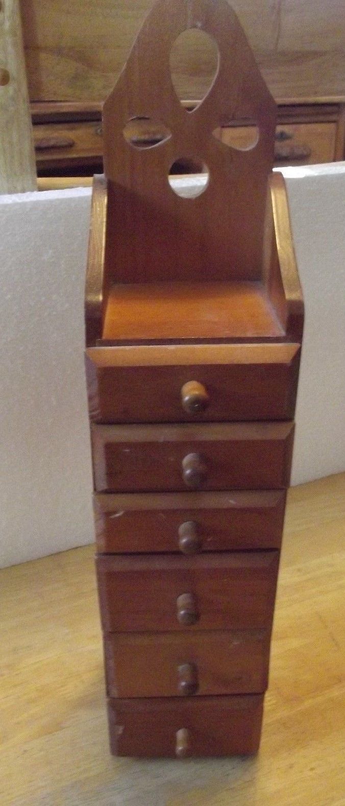 ANTIQUE VINTAGE WOODEN WALL 6-DRAWER SPICE RACK APOTHECARY CABINET