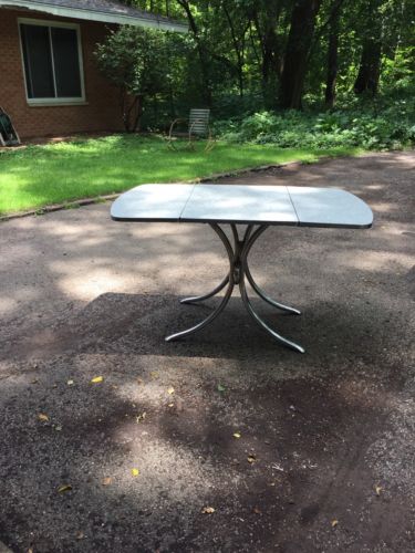 Title (ebay affiliate link): Vintage Mid Century Drop Leaf Formica Kitchen Table Grey Cracked Ice Gray