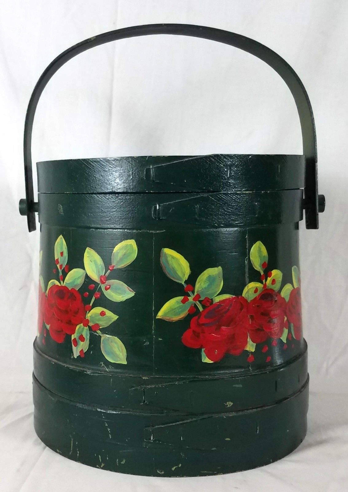 Title (ebay affiliate link): Older Hand Painted FIRKIN SUGAR BUCKET Sewing BOX Red Roses on GREEN GROUND