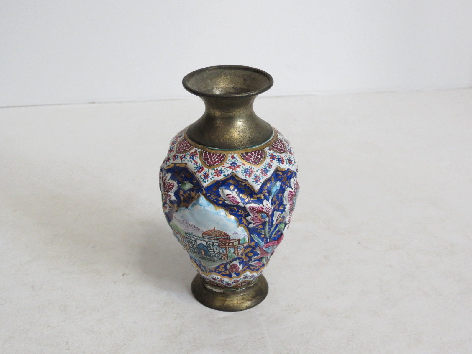 Title (ebay affiliate link): * VINTAGE THAI INDIAN ASIAN HAND PAINTED WHITE METAL VASE 4 1/2" *
