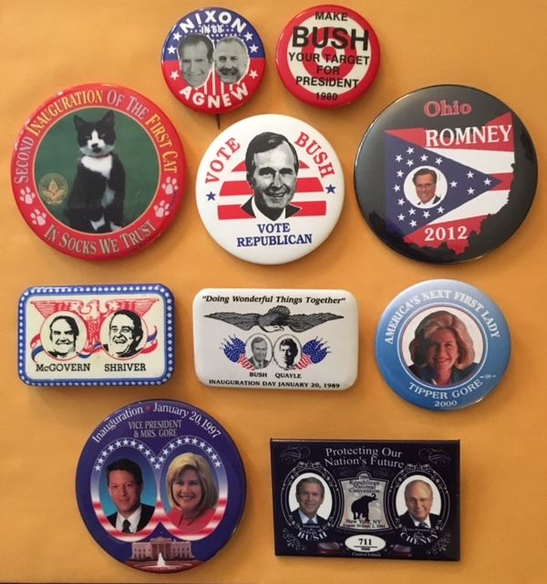Title (ebay affiliate link): Variety of Ten Different Political Campaign Pinback Buttons